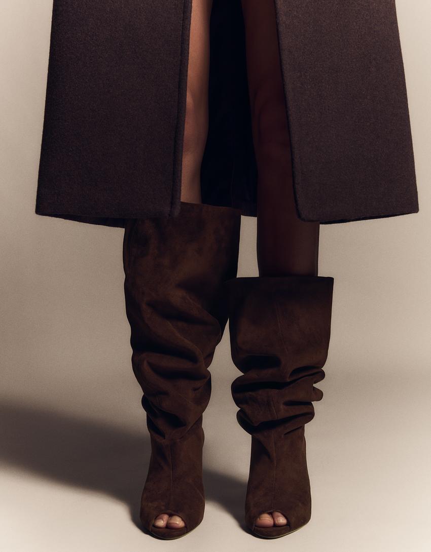 Heel height: 8.5 cm. Shaft height: 42 cm. Shaft width: 21 cm. Flexible technical latex foam insole for enhanced comfort.